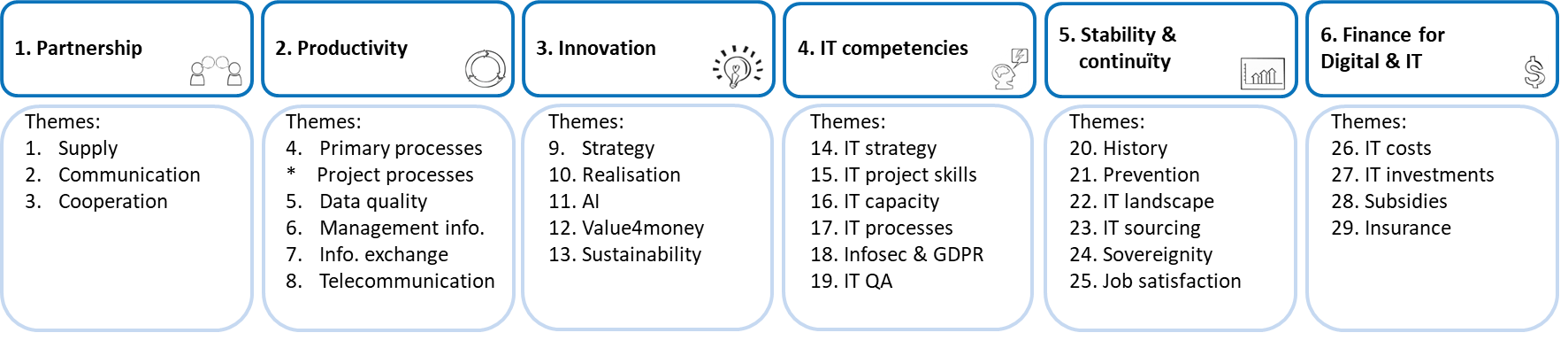 We inspire organizations and provide integral insight to make choices and speed. You can easily measure and improve the Six success factors for digital transformation© with the BusinessITScan®. This helps you to connect colleagues and achieve goals. Our colleagues and partners are more than happy to assist you!